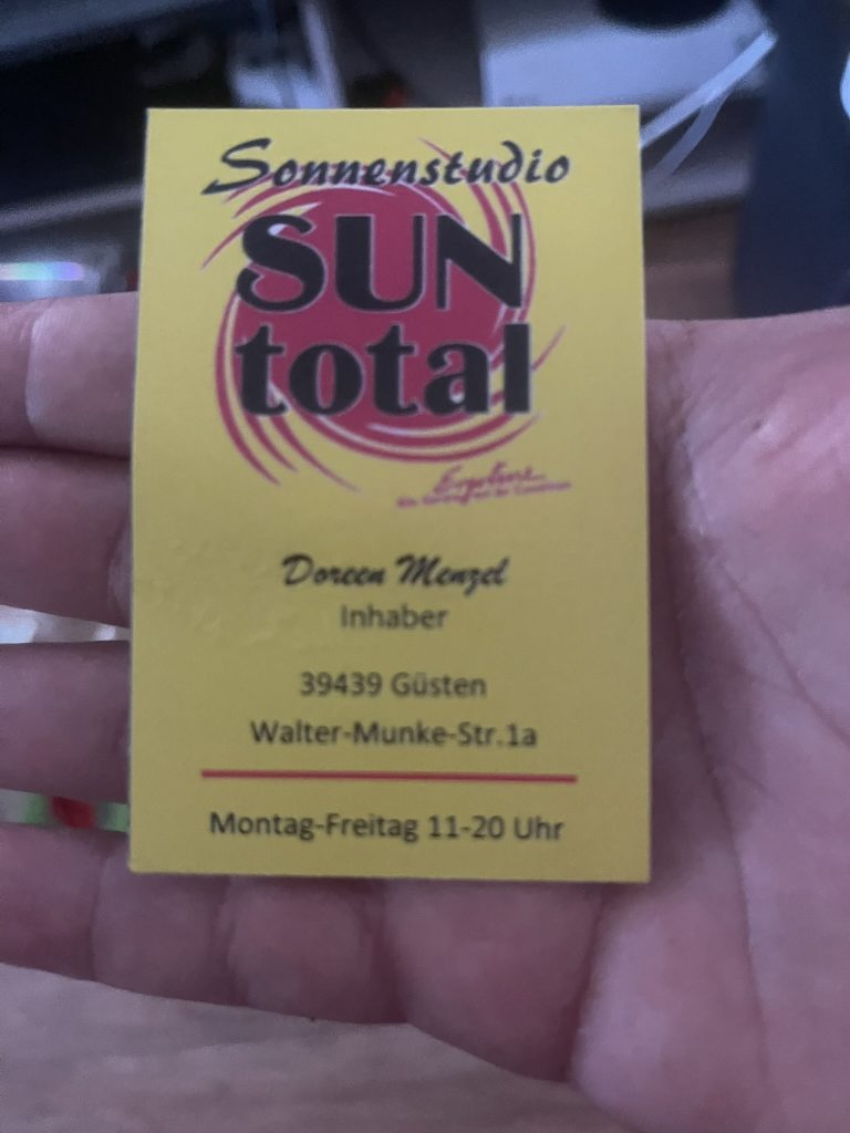 Das Solarium im Salzlandkreis öffnet täglich ab 11 Uhr seine Türen und liegt gut erreichbar in Güsten – ein kleiner Zufluchtsort für alle Piraten, die gerade weder Sand, Meer noch Sonne zur Verfügung haben. Für Oliver ist es längst mehr als nur ein Ort zum Bräunen: Zwei Mal pro Woche steuert er das Studio an, manchmal sogar drei Mal, wenn die Woche nach ein bisschen Extra‑Wärme ruft.